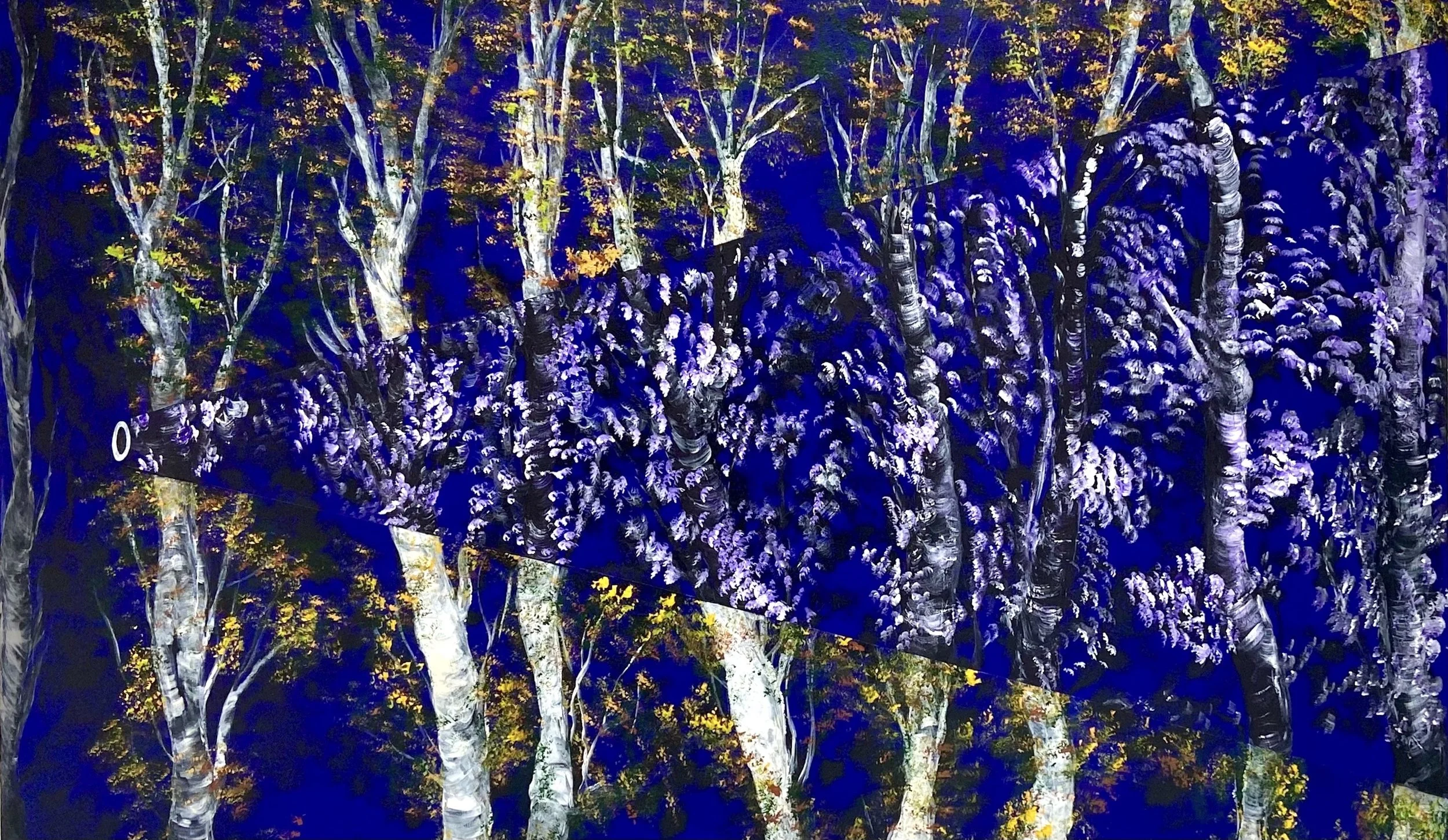 I needed a touch of innocence and purity to keep going on. I let the brushes lead and I followed.Trees, depicted as undistorted, could symbolize a yearning for purity and simplicity in a complex world.